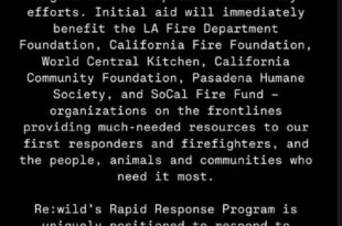 American actor and film producer, Leonardo DiCaprio has announced a $1 million donation toward operations helping firefighters battle the ongoing Los Angeles fires. ‘The Los Angeles wildfires are devastating our city,’ the A-lister, 50, said Wednesday on Instagram Stories. ‘I am committing $1 million in partnership with @rewild’s Rapid Response Program to support both urgent needs and post-fire recovery efforts.’ The Los Angeles native listed a …