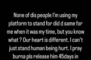 Crossdresser, Bobrisky, has appealed to singer, BurnaBoy, to effect the release of singer Speed Darlington. Speed Darlington has been in police custody since November 27 after he was arrested for jumping bail in an ongoing investigation into a petition filed against him by his colleague, Burna Boy. In a post shared on Instagram, Bobrisky said prison is not …