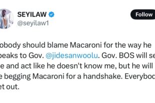 Controversial comedian Oluwaseyitan Aletile, popularly known as Seyi Law, has taken a swipe at Lagos State Governor, Babajide Sanwo-Olu, after skit maker Mr. Macaroni publicly vowed to continue snubbing the governor. Mr. Macaroni recently sparked widespread reactions when he declared his intention to keep snubbing Governor Sanwo-Olu while responding to criticism from an X user who accused him of …