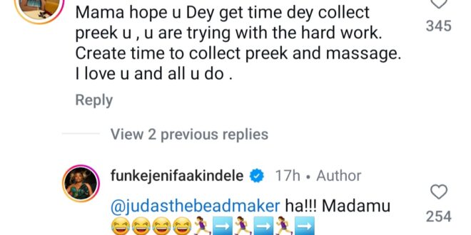 Funke Akindele has responded to a fan who is curious about what goes on in her personal life.